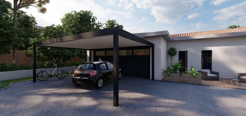 - Carport adossé : fixé à la façade pour un accès direct à la maison.