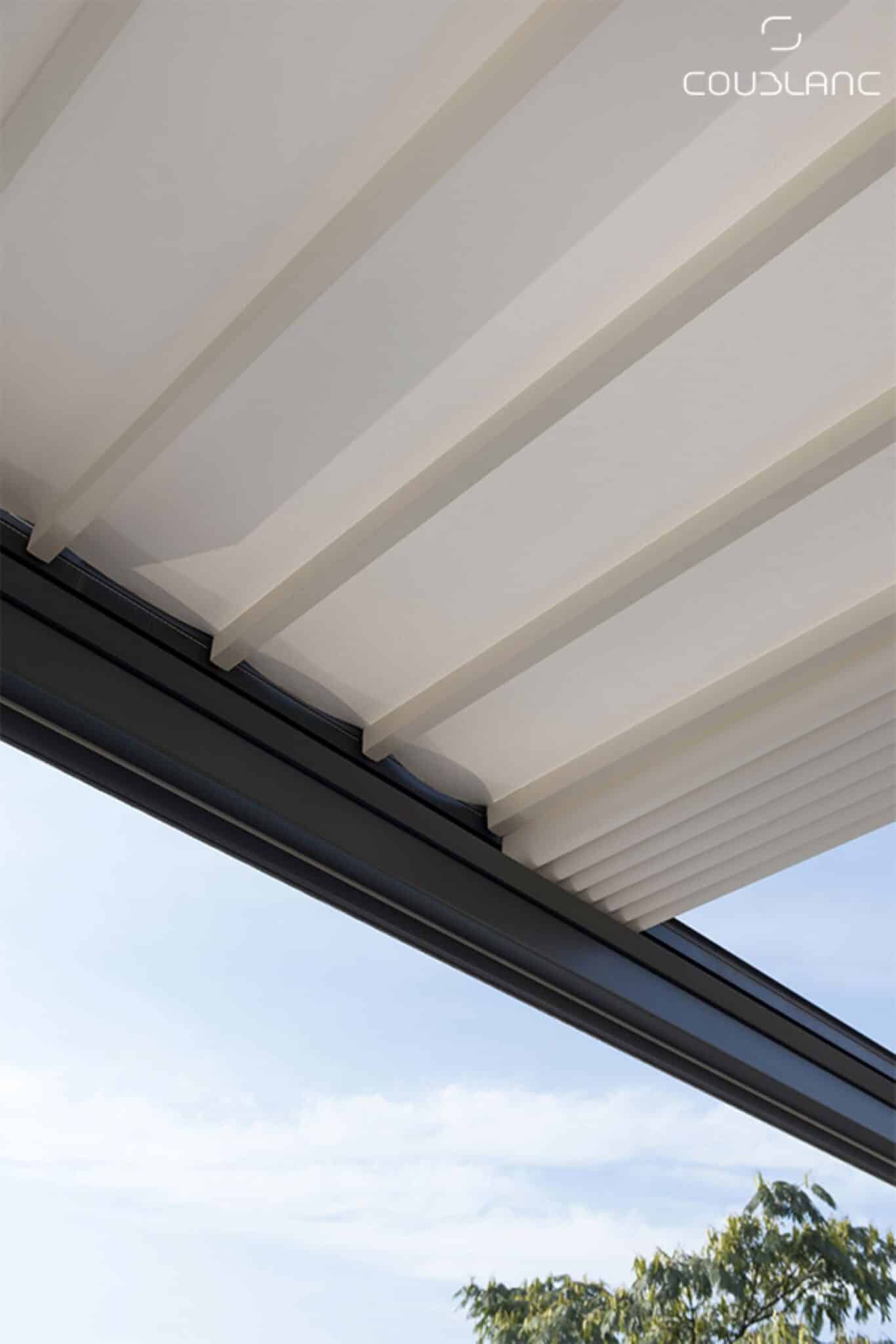 Pour une utilisation plus polyvalente, une toile PVC imperméable permet de bénéficier d’une protection efficace contre les averses. Associée à une pente minimale (généralement entre 5° et 15° selon les modèles), l’eau est évacuée naturellement vers l’extérieur grâce au système de tension et aux profils porteurs en aluminium.