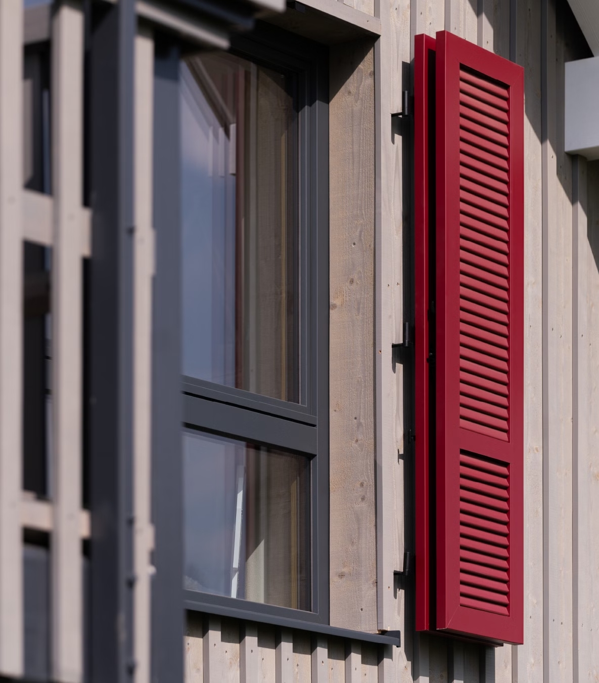 Évolution moderne du modèle traditionnel, le volet battant lames orientables permet de moduler l’inclinaison des lames selon vos envies. Vous ajustez d’un simple geste le réglage de la lumière, de l’occultation totale à une ventilation modulable. Fabriqué en aluminium extrudé, il combine le design d’une persienne classique avec la praticité d’un brise-soleil contemporain.