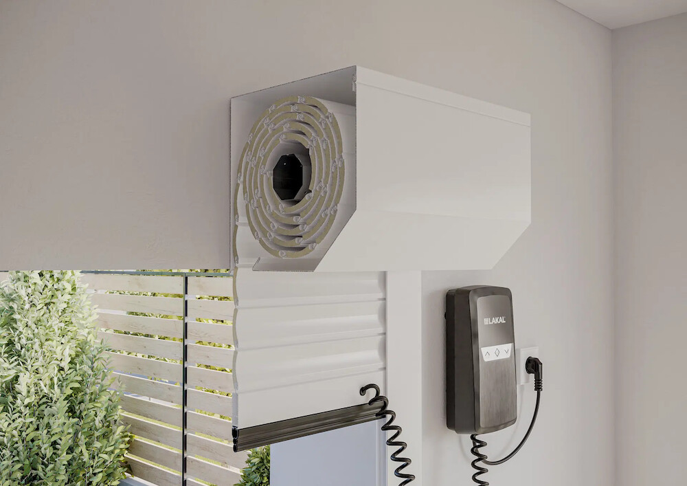 - Le coffre en aluminium laqué, discret et esthétique, protège l’axe d’enroulement et le moteur. Il s’intègre harmonieusement à la façade ou à l’intérieur du garage selon la configuration choisie.