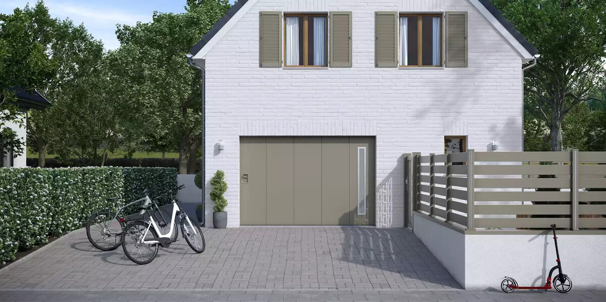 Les options de personnalisation sont très nombreuses : large choix de couleurs (nuanciers RAL, finitions Decograin, Duragrain), motifs de panneaux (rainures, cassettes, lisse) et la possibilité d’intégrer des hublots pour plus de lumière.