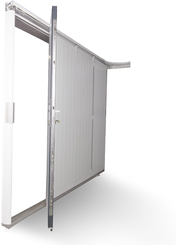La porte sectionnelle latérale s’ouvre horizontalement en coulissant le long d’un mur, contrairement aux portes basculantes ou sectionnelles plafonds qui s’ouvrent verticalement. Cela libère l’espace au plafond et offre une ouverture partielle pour piétons.