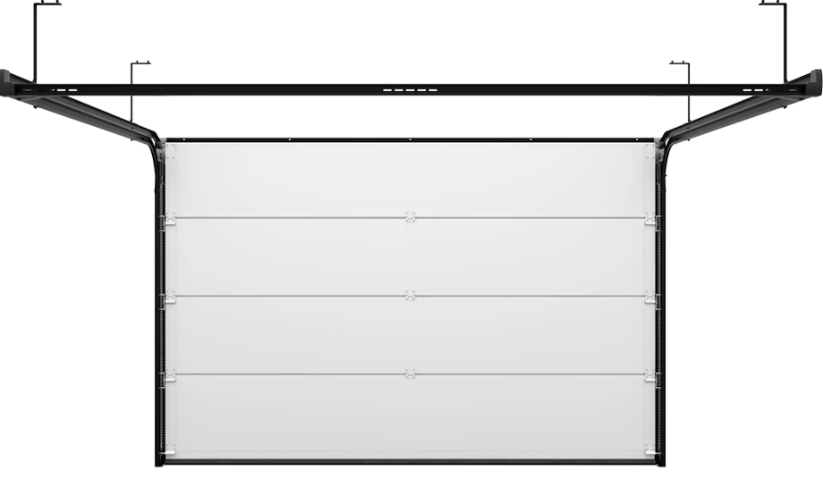 Contrairement aux portes basculantes ou battantes, la porte sectionnelle n’empiète ni sur l’extérieur ni sur l’intérieur du garage au moment de l’ouverture.
